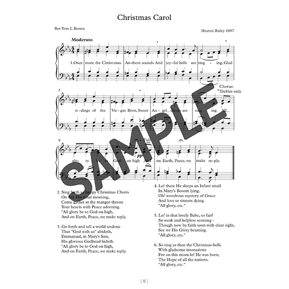 This is a unique collection of twenty-one recently discovered original arrangements of hymns and worship music. They are written with beautiful harmonies, for piano or organ, and can be used for personal, church or choral singing. Some are new arrangements for known hymns, such as Onward Christian Soldiers. Other songs include Christmas carols, chants and Nunc Dimittis.